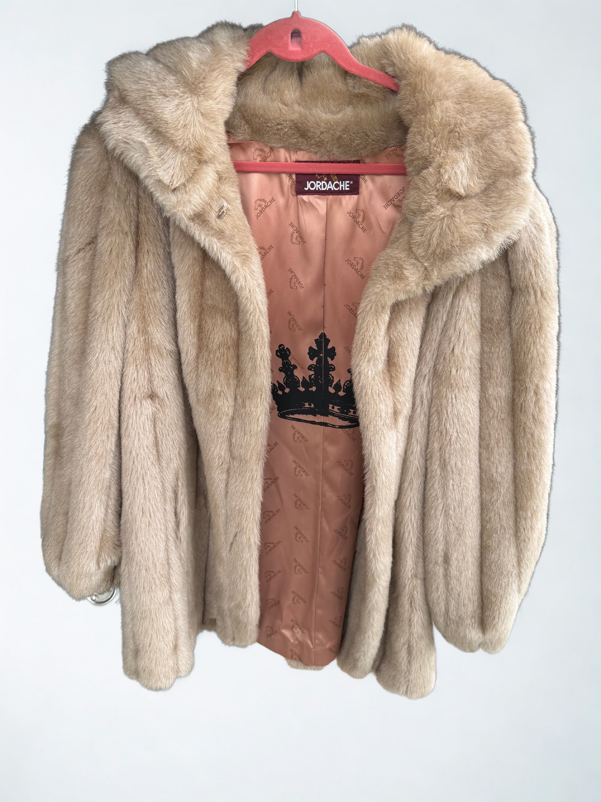 Vintage 1980s Jordache Faux Fur Coat – Champagne Beige | Voza Crown Collection (M/L)