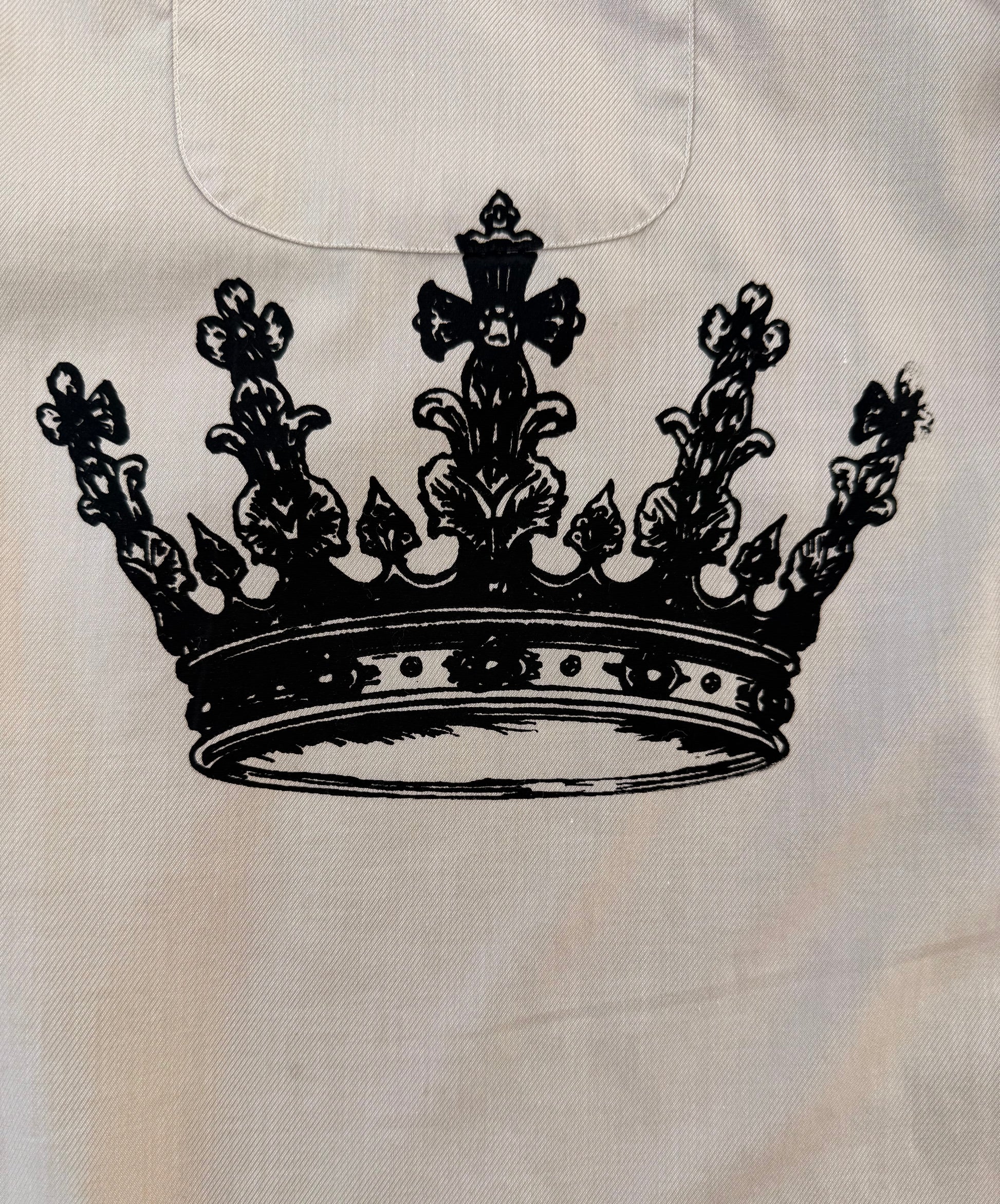 Crafted from 100% cotton, this men’s XL long sleeve shirt is soft yet structured, designed for both comfort and presence. Featuring a full button-down front, chest pocket, and buttoned cuffs, it carries timeless utility while the bold black crown graphic transforms it into a statement piece.