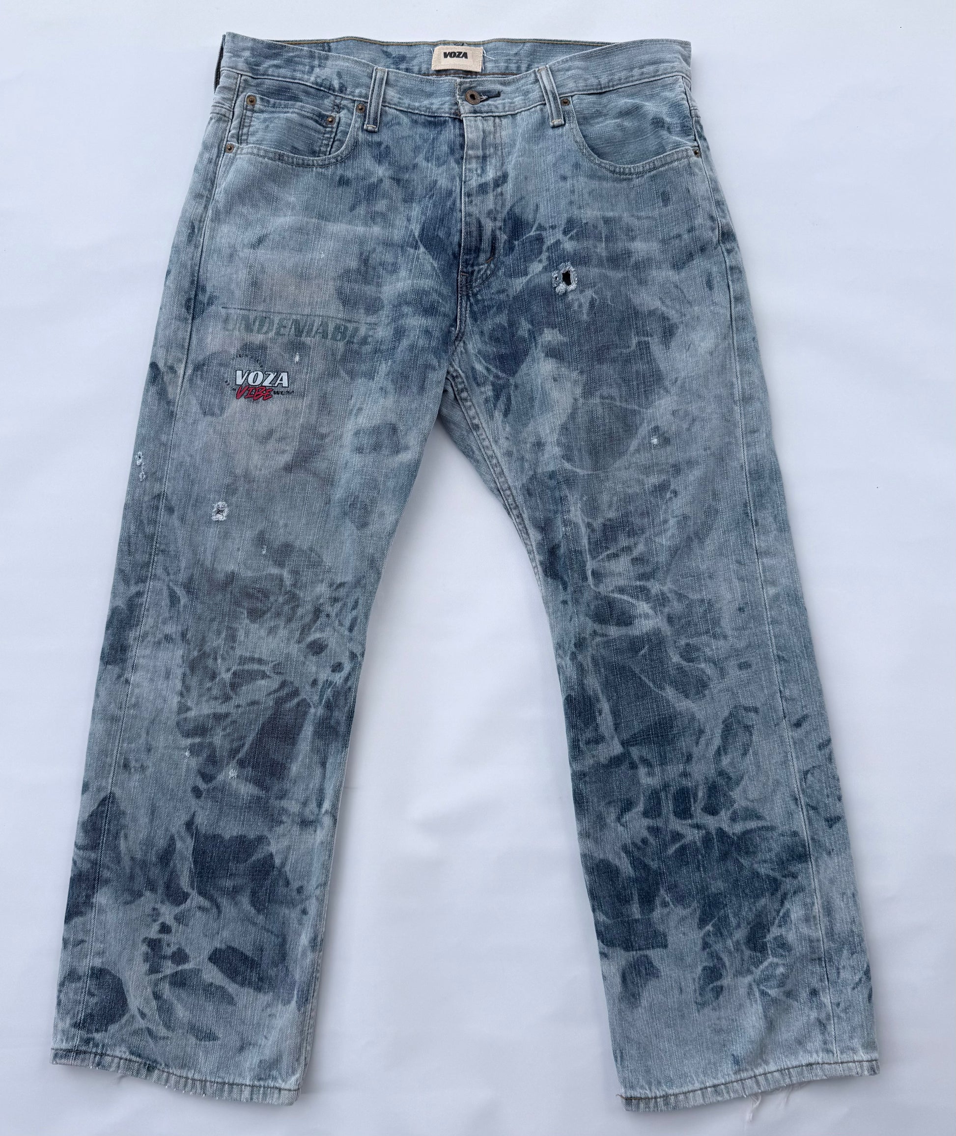 Voza Reworked “Undeniable” Bleached & Distressed Jeans – Size 36x30